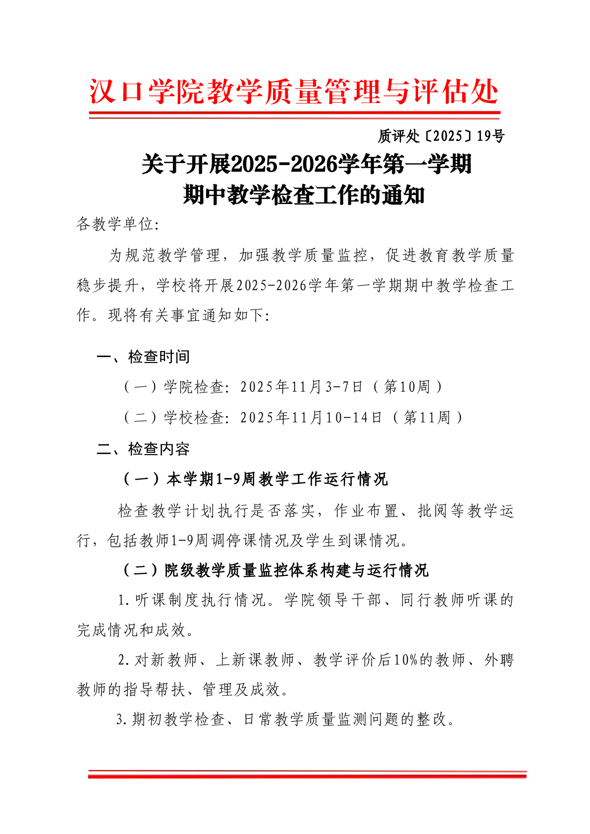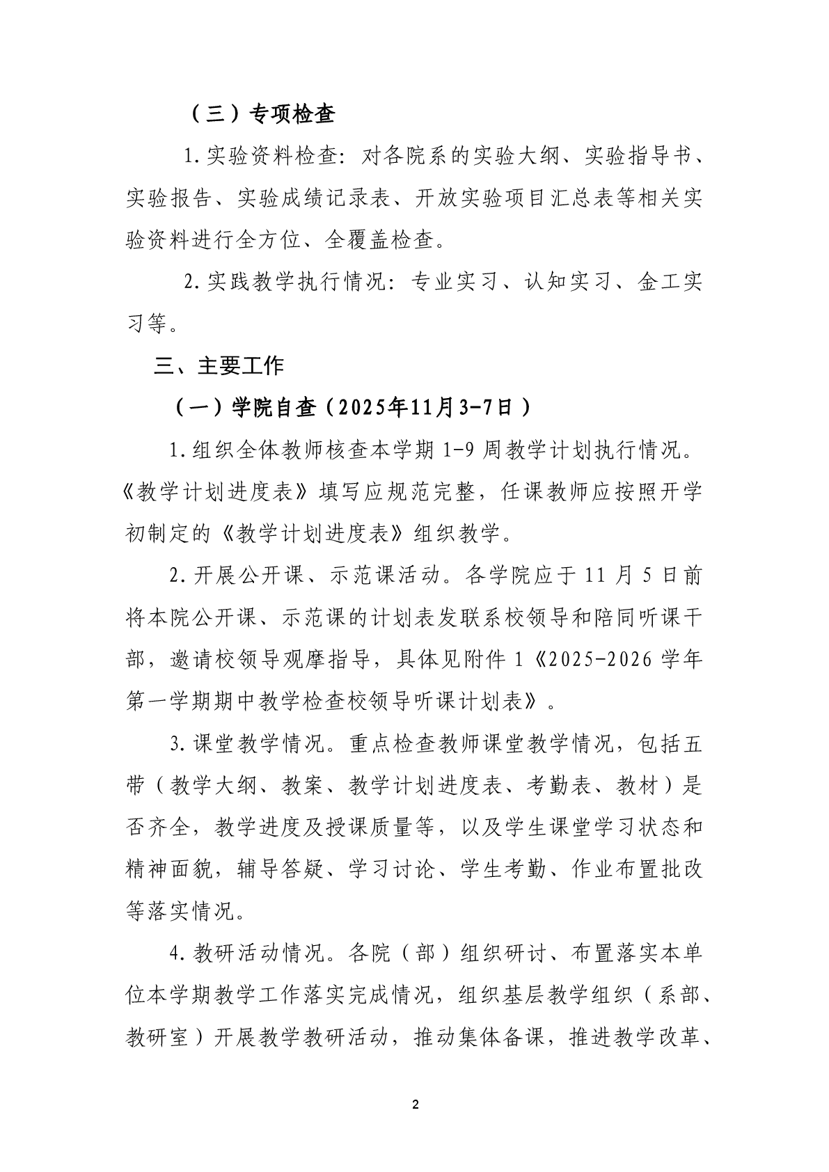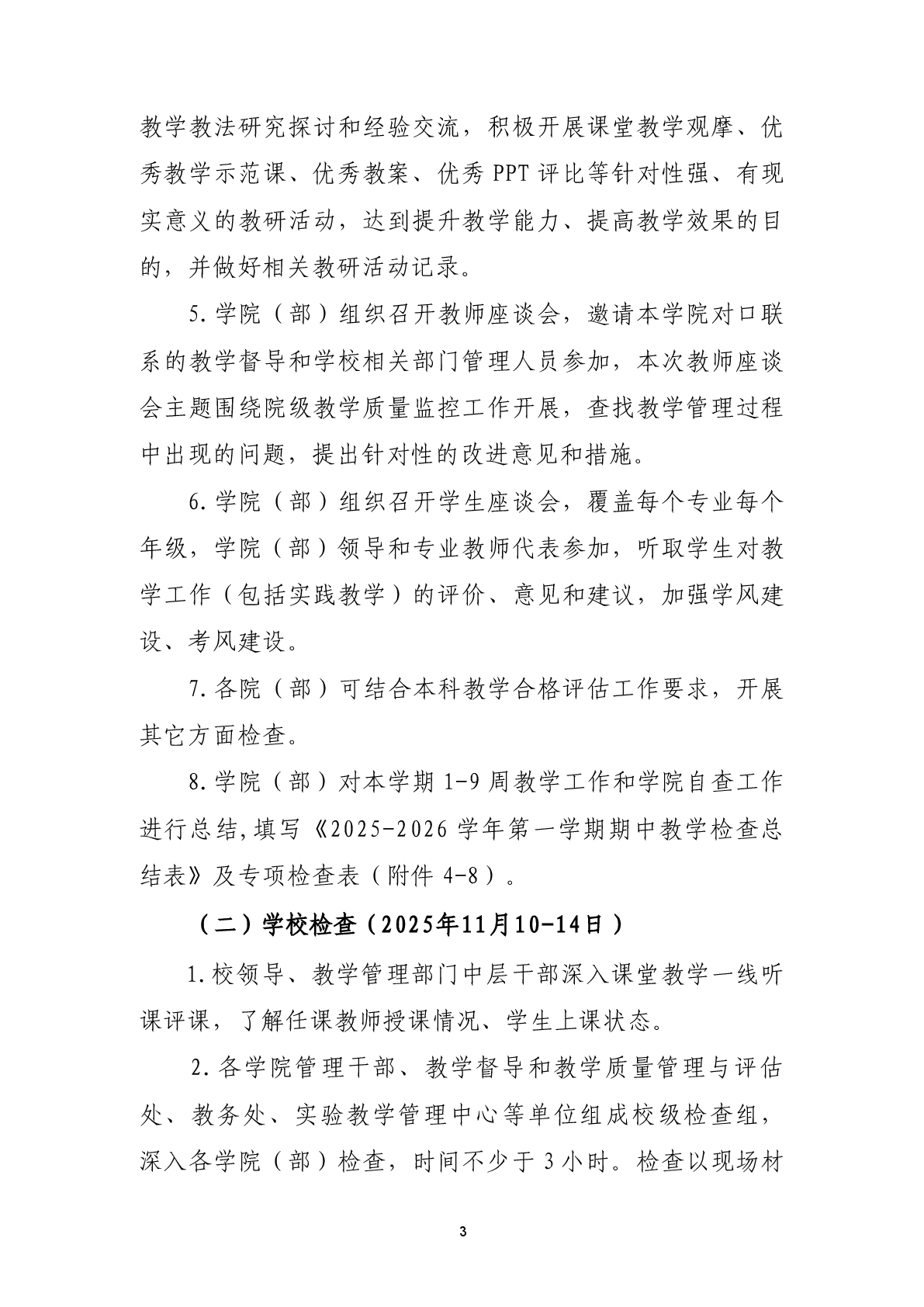关于开展2025-2026学年第一学期期中教学检查工作的通知
